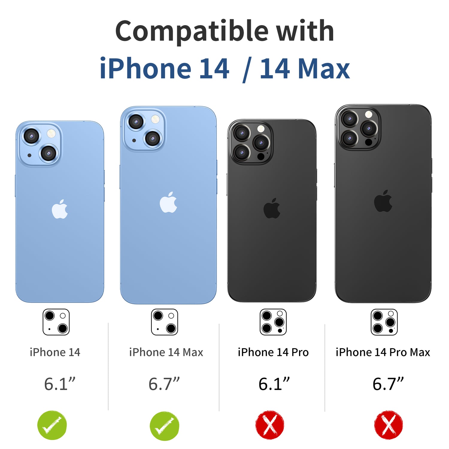 - Note! This Listing of Camera lens protector For iPhone 14 Pro (6.1'') 5G and iPhone 14 pro max(6.7") , Not For iphone 14 And 14 Max