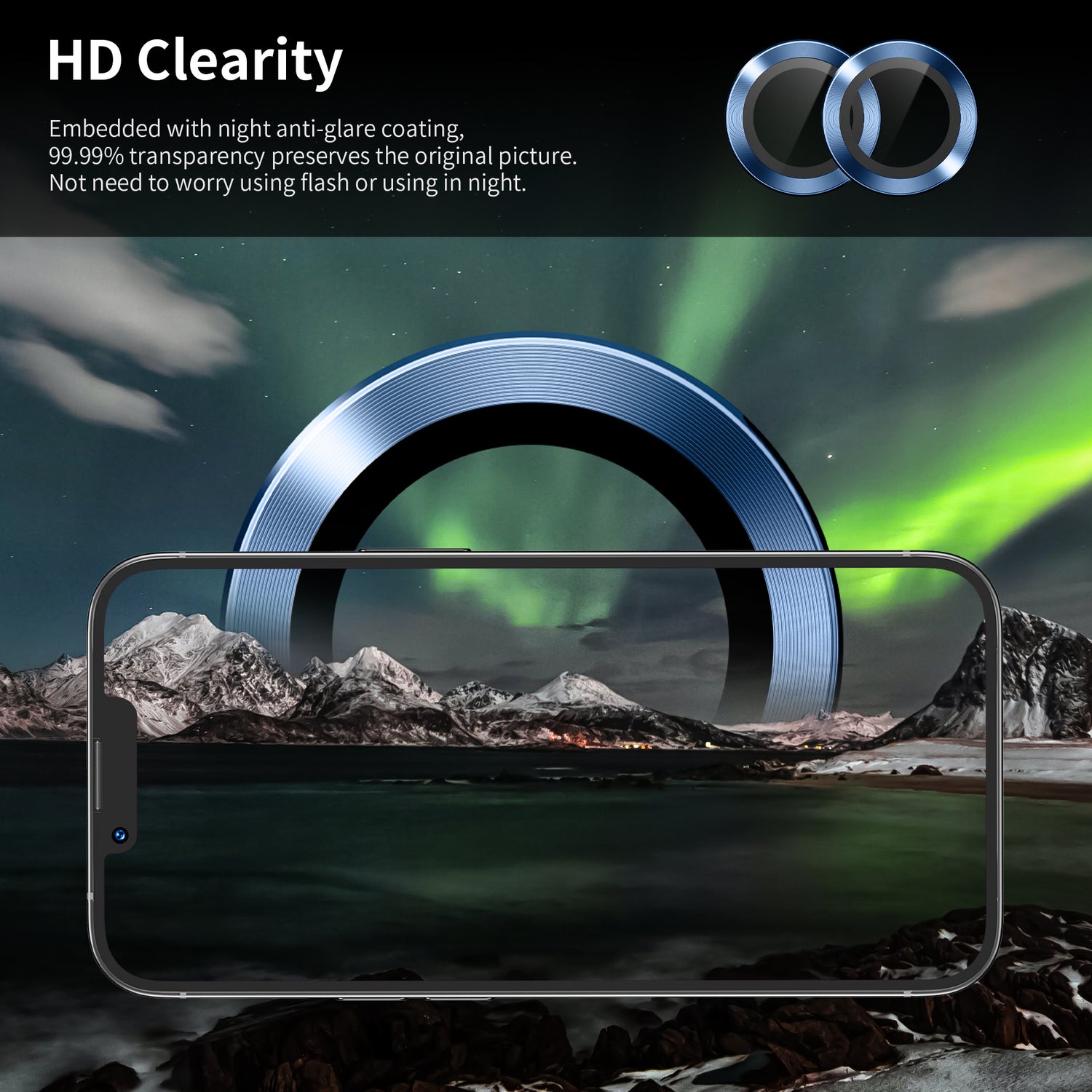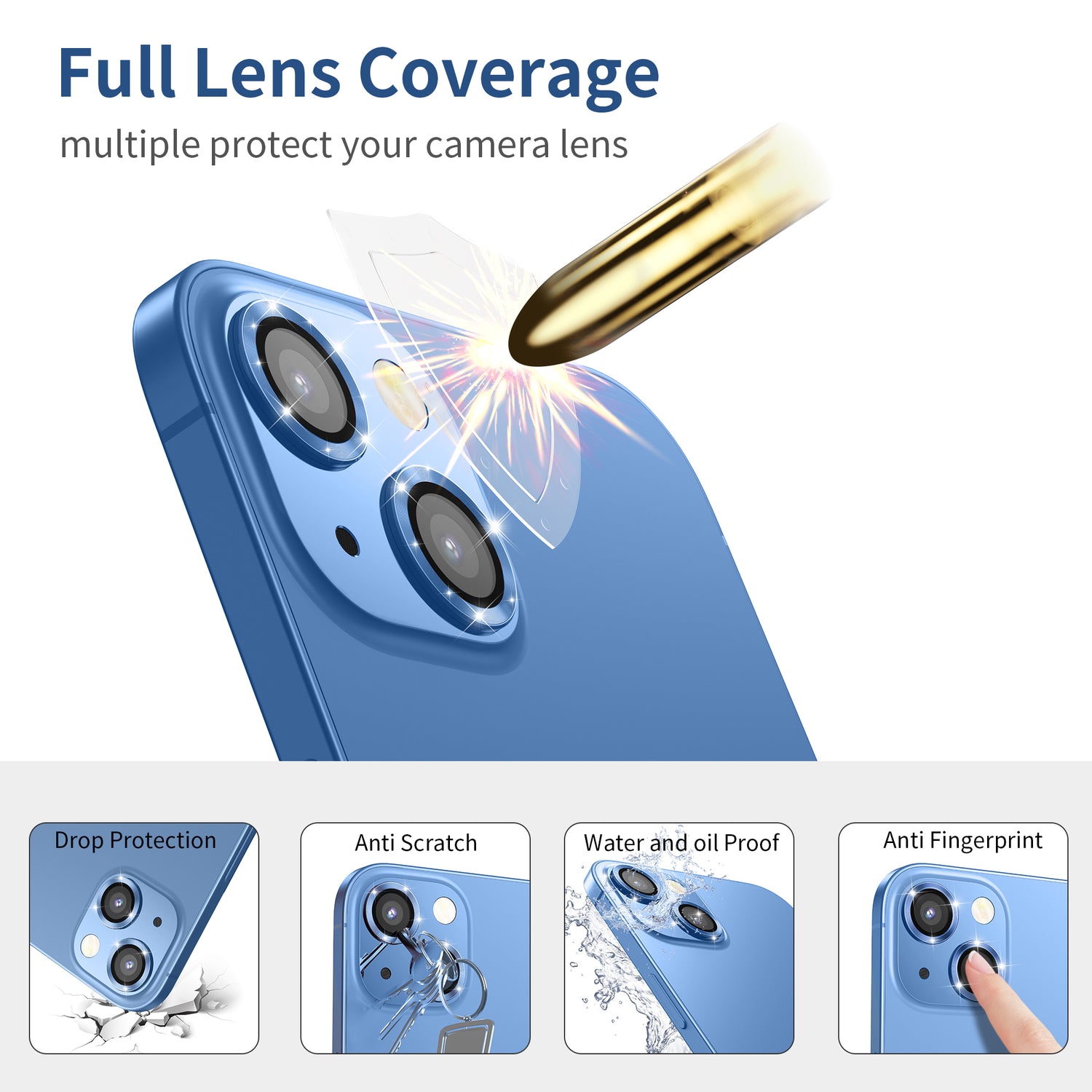 Hoerrye iPhone 14 Plus (6.7 inch) & iPhone 14 (6.1 inch) Camera Lens Protector -Blue