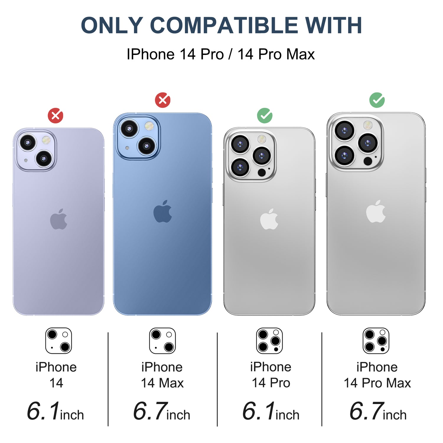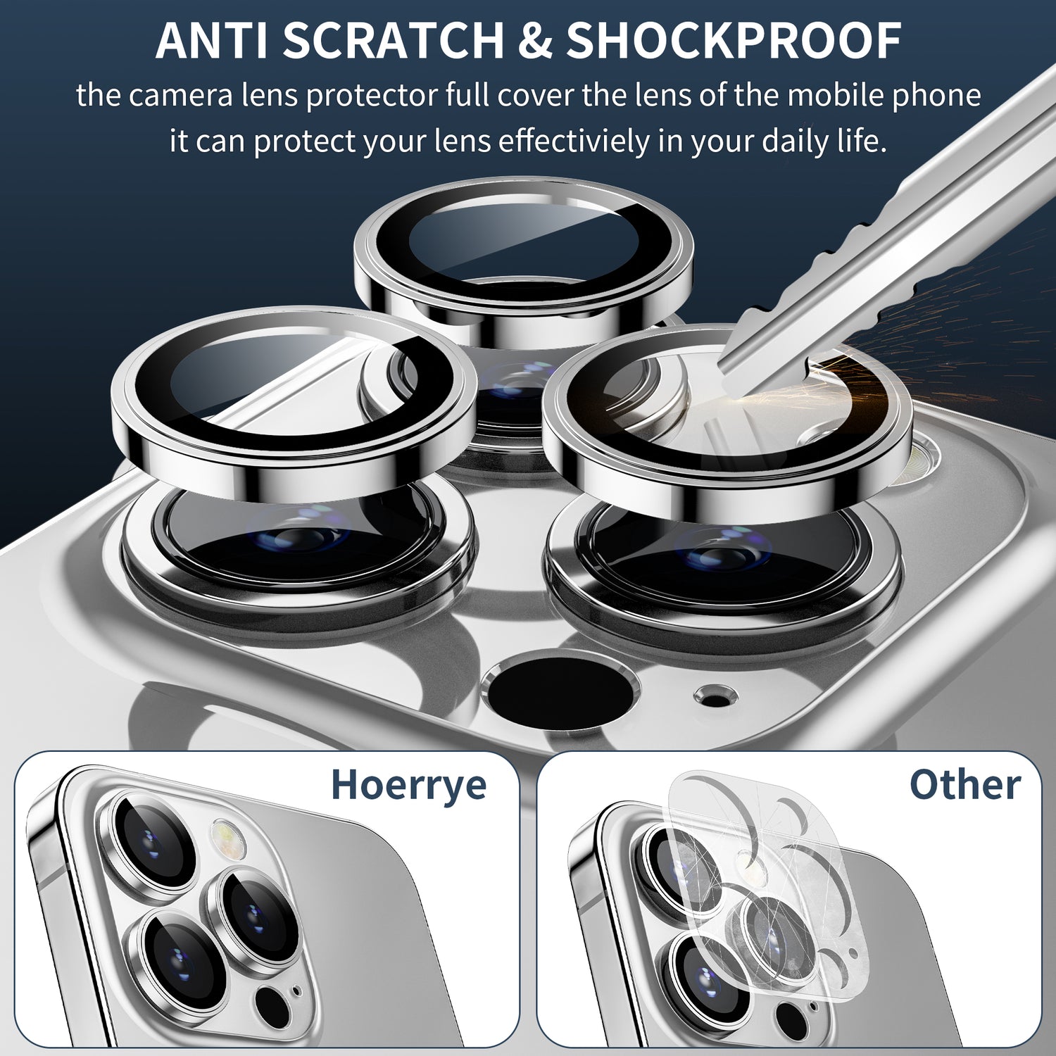 Hoerrye for iPhone 14 Pro/iPhone 14 Pro Max Camera Lens Protector, [Keep Lens Original Design] Anti-Scratch 9H Tempered Glass Camera Cover Screen Protector Metal Ring Accessories - Silver
