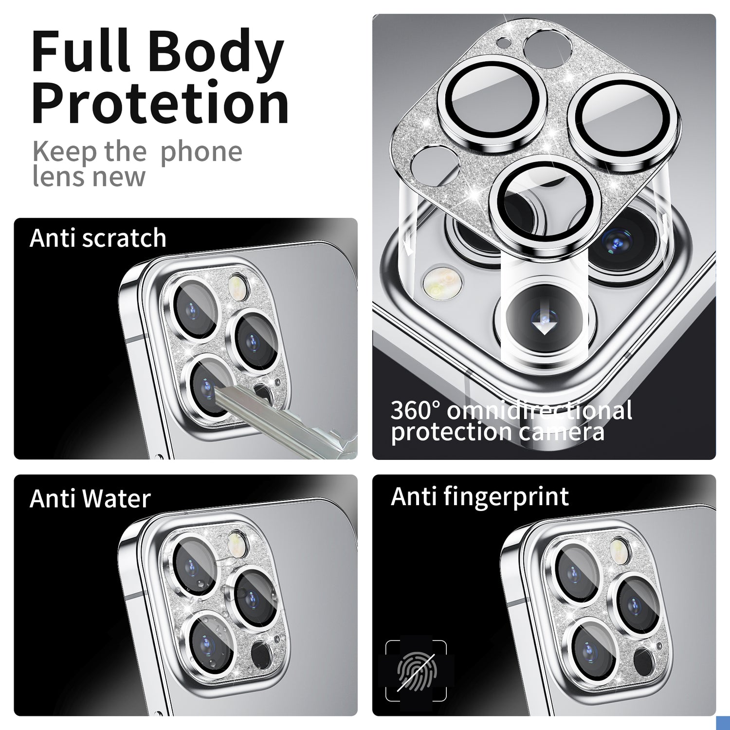 - [Full Protection] Full coverage drops protection anti-scratch, shockproof. The aviation aluminum metal ring and 9H tempered glass camera protector effectively protecting the lens,featuring maximum protection from scratches, scrapes, and bumps.